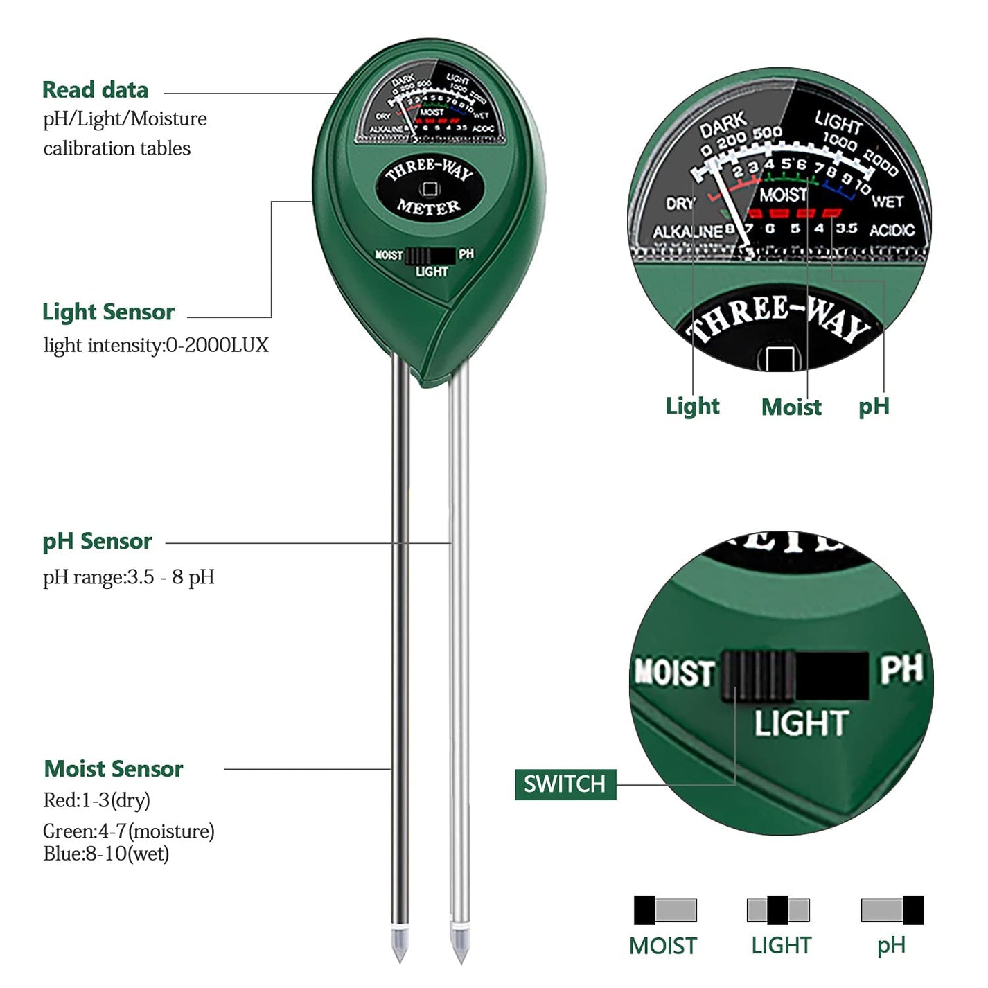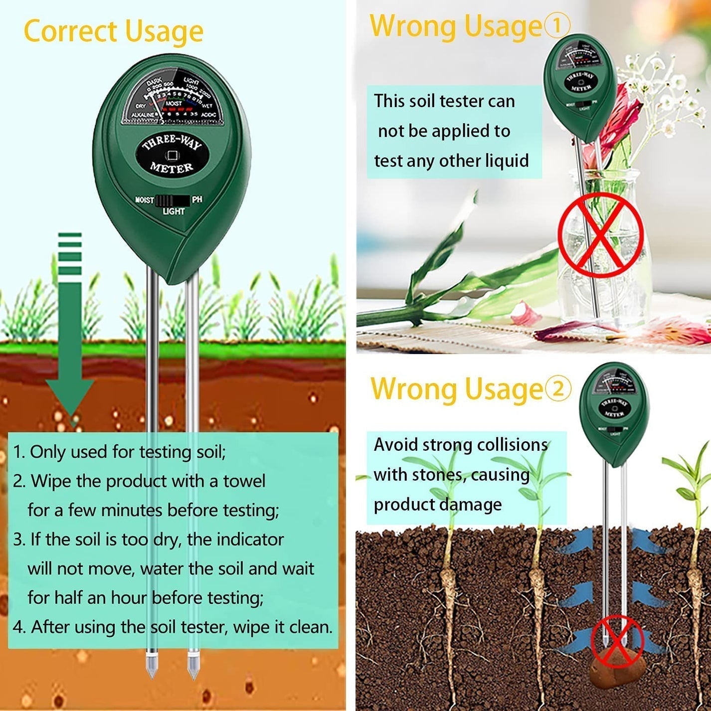 ✔ Easy to Use: Simply insert the probe into the soil, and the meter will deliver accurate, real-time readings without requiring batteries or complicated setups.