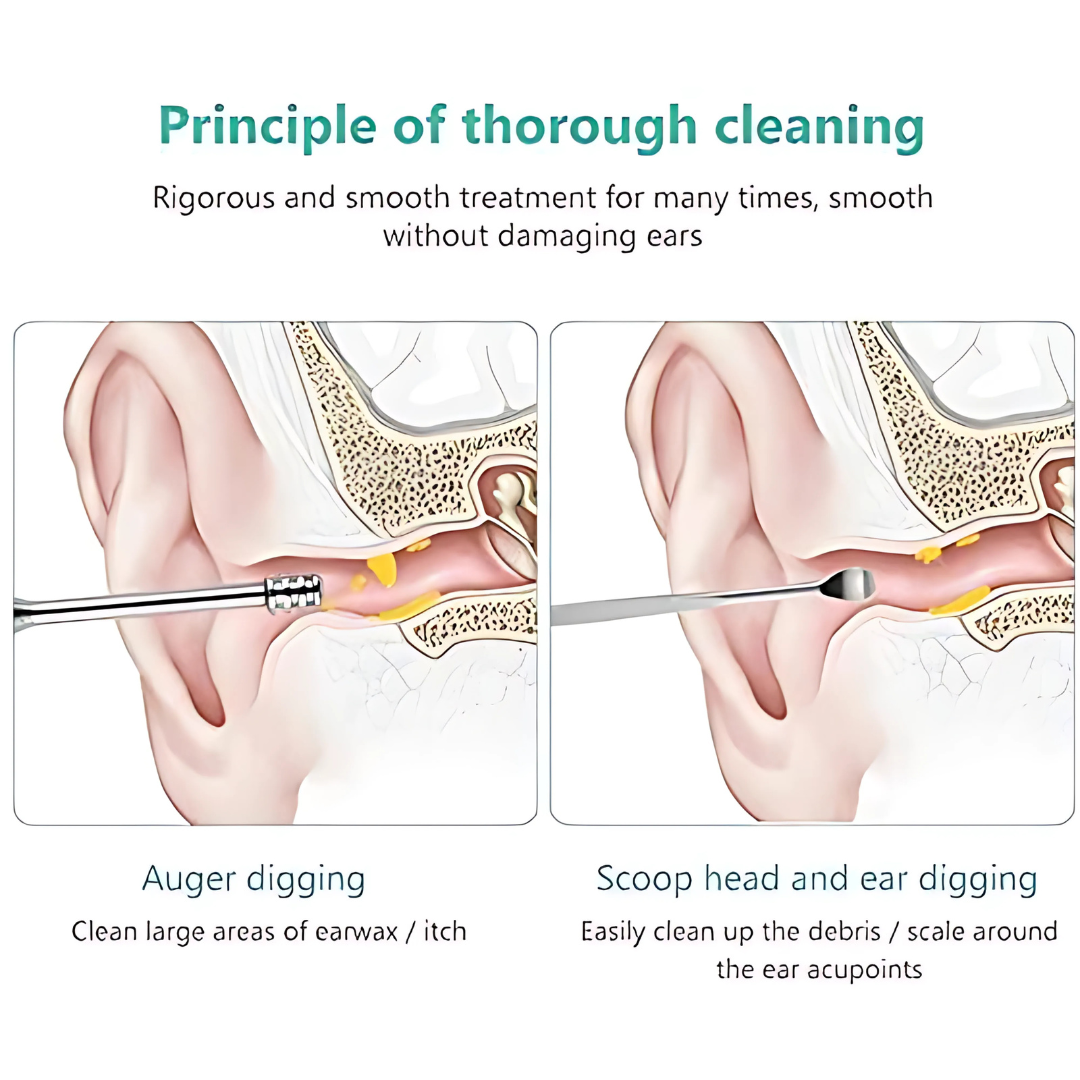 Compared with the traditional cotton swab, which may push the earwax into the ear, our earwax removal kit have several improvements. The ear pick in scoop shaped can remove the earwax easily and effectively.Helical groove tip-It can prevent damage to ear drums and damage to hearing.
