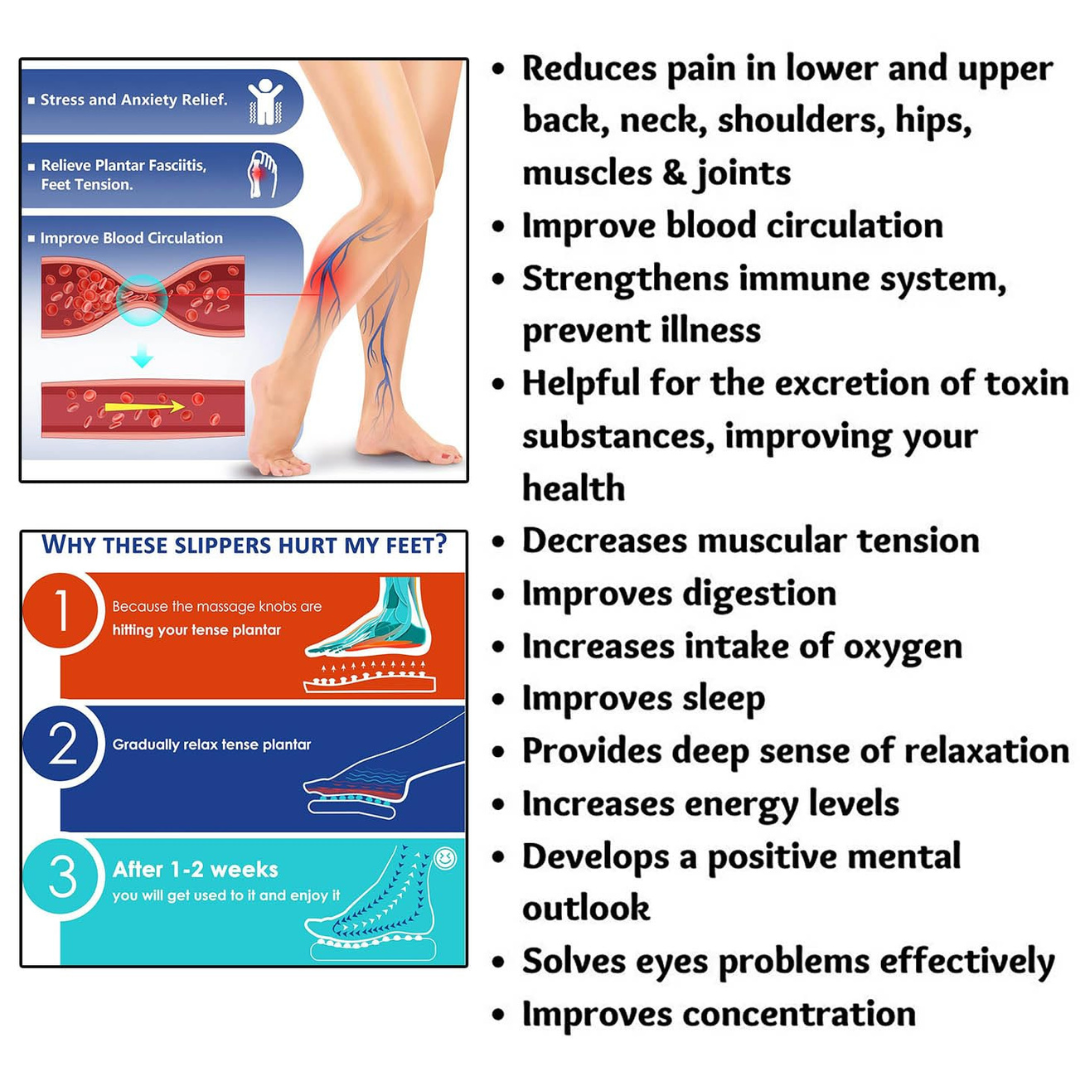*Enhanced Energy Levels: Regular use of acupressure slippers can boost energy levels by invigorating the body's natural healing processes. It helps in combating feelings of fatigue and lethargy, keeping you refreshed throughout the day.