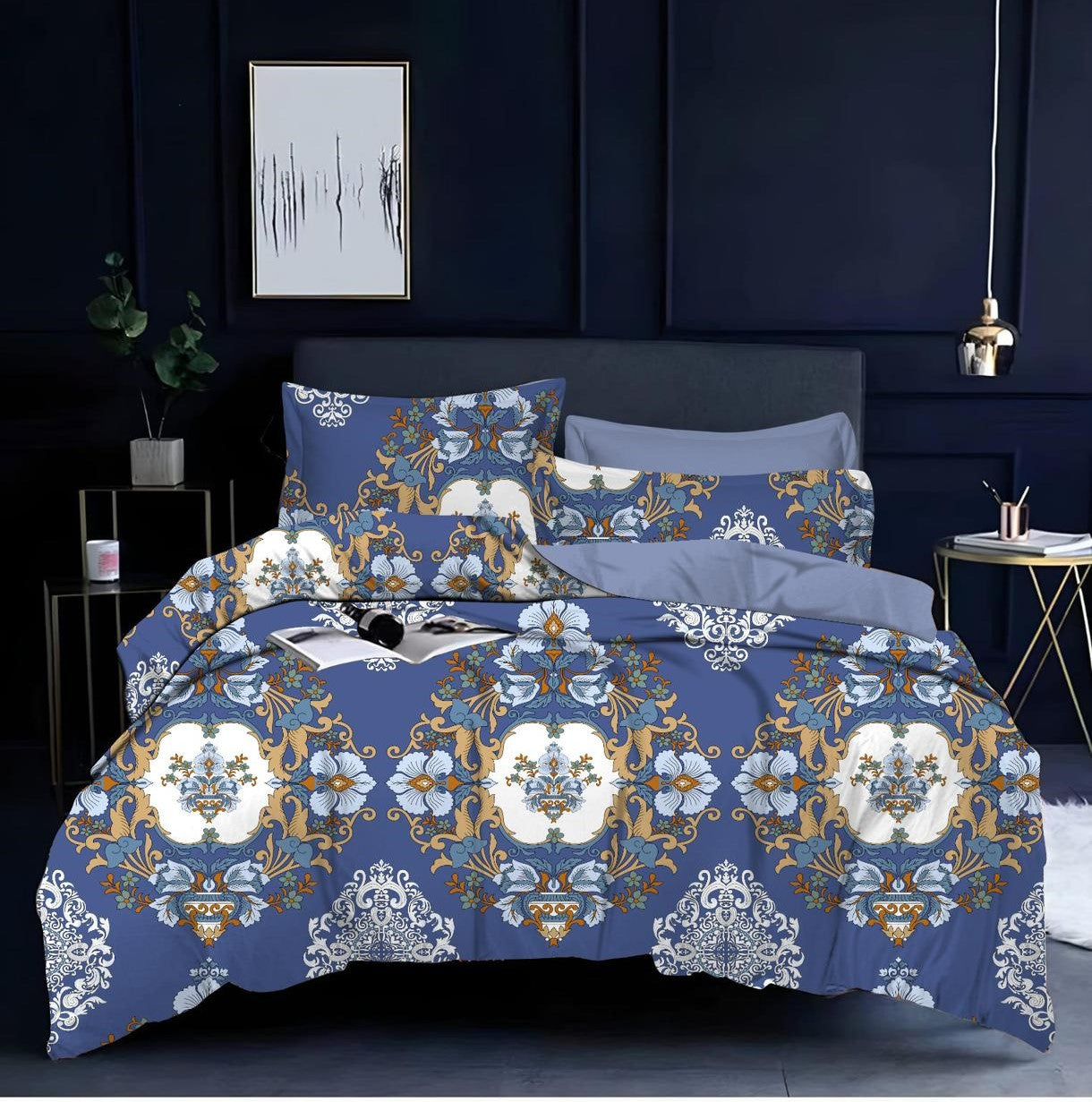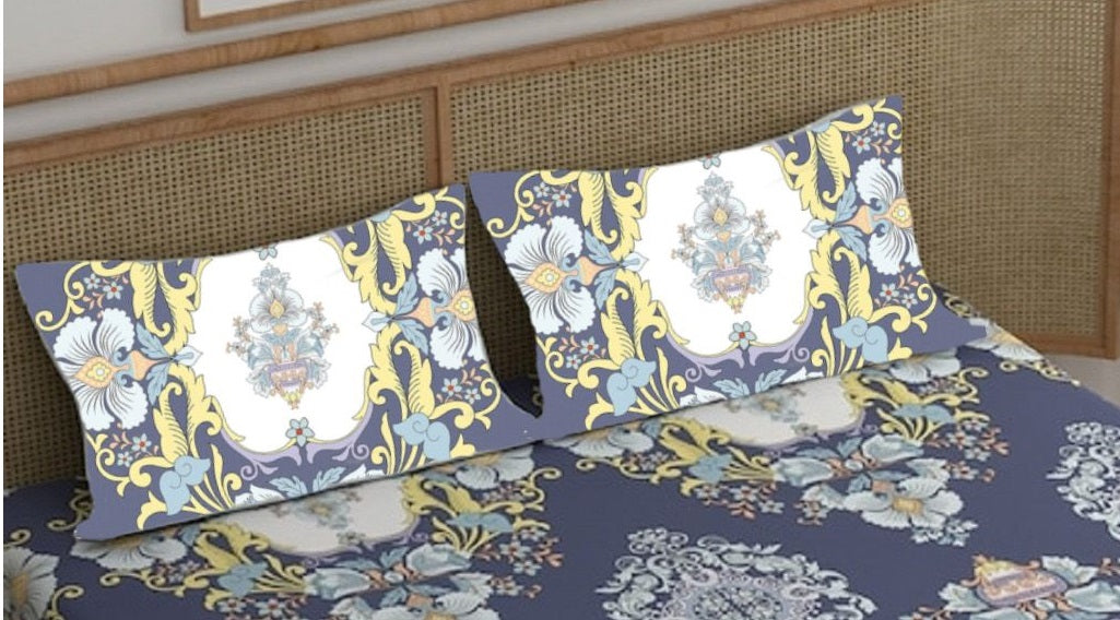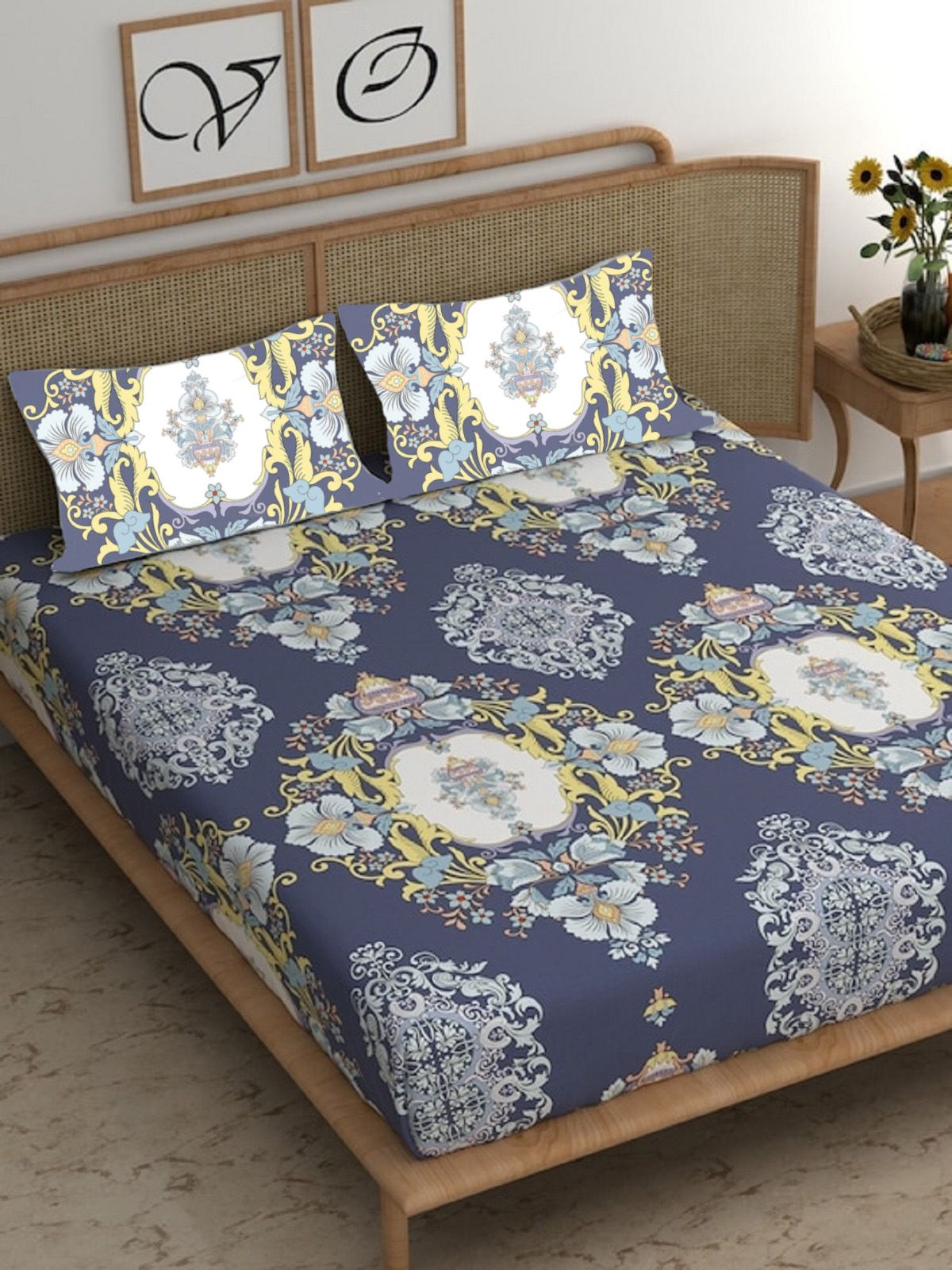 Floral Print Double Elastic Fitted Bed Sheet with 2 Pillow Covers