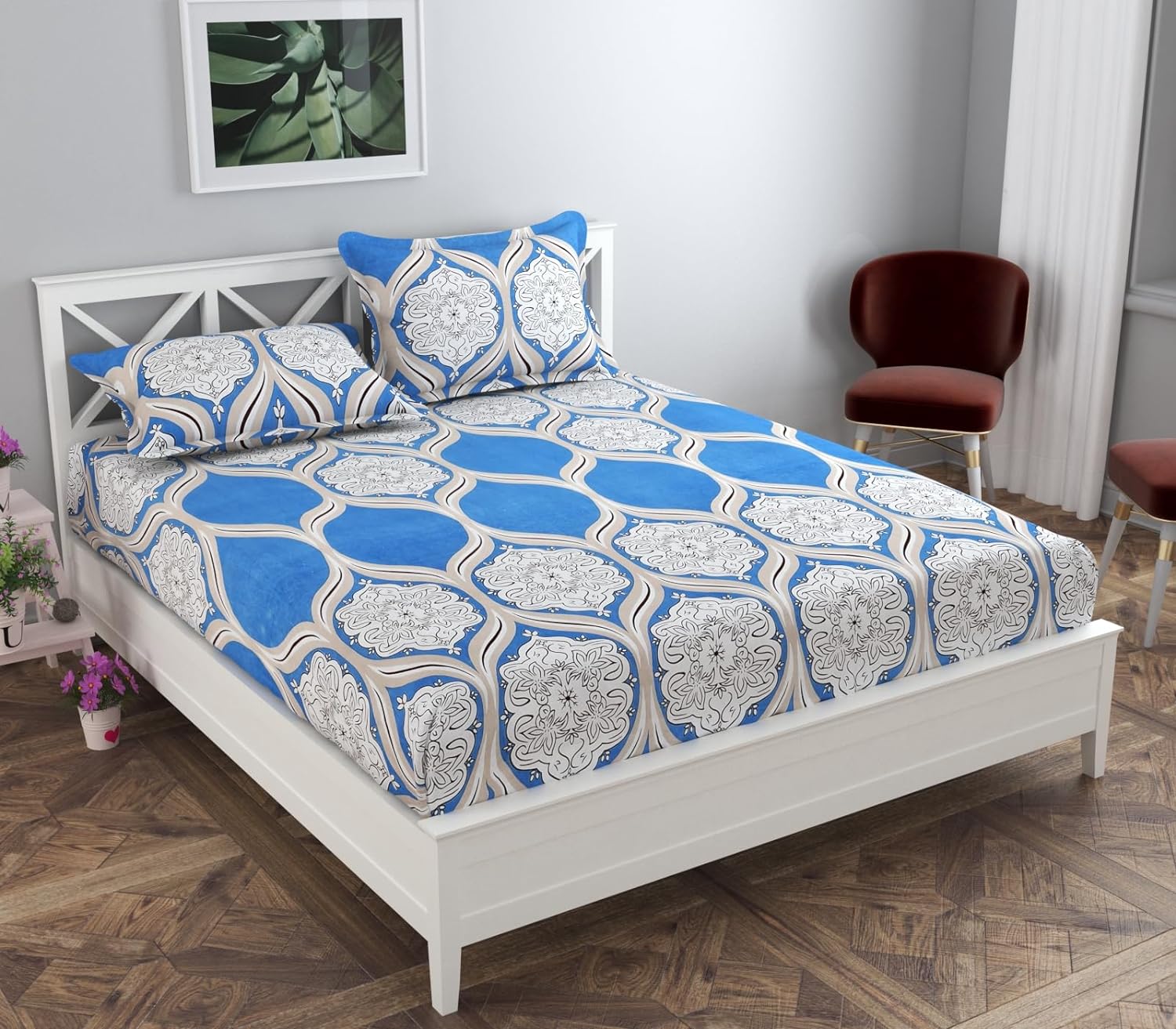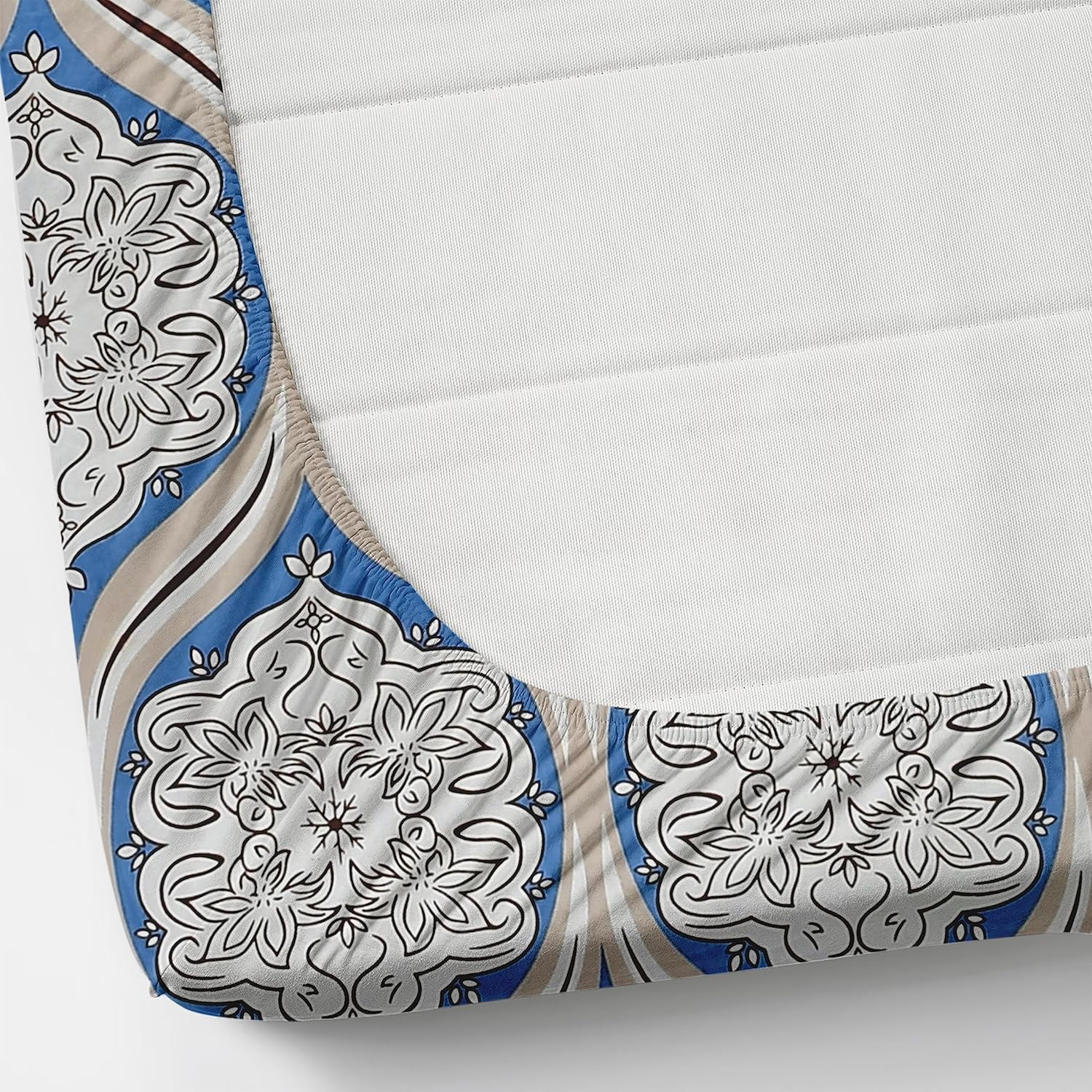 Blue Damask Blue Check King Size Double Bed Elastic Fitted Premium Bedsheet