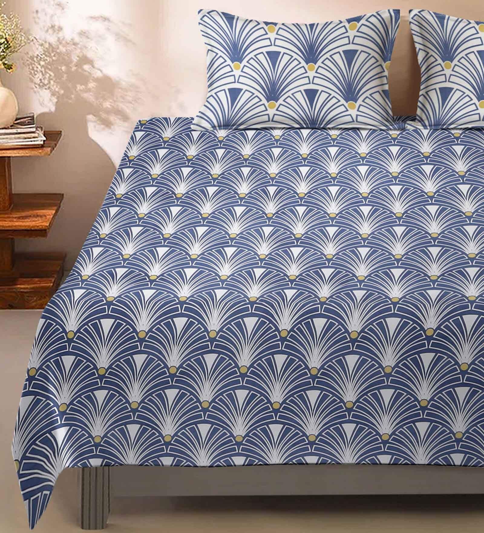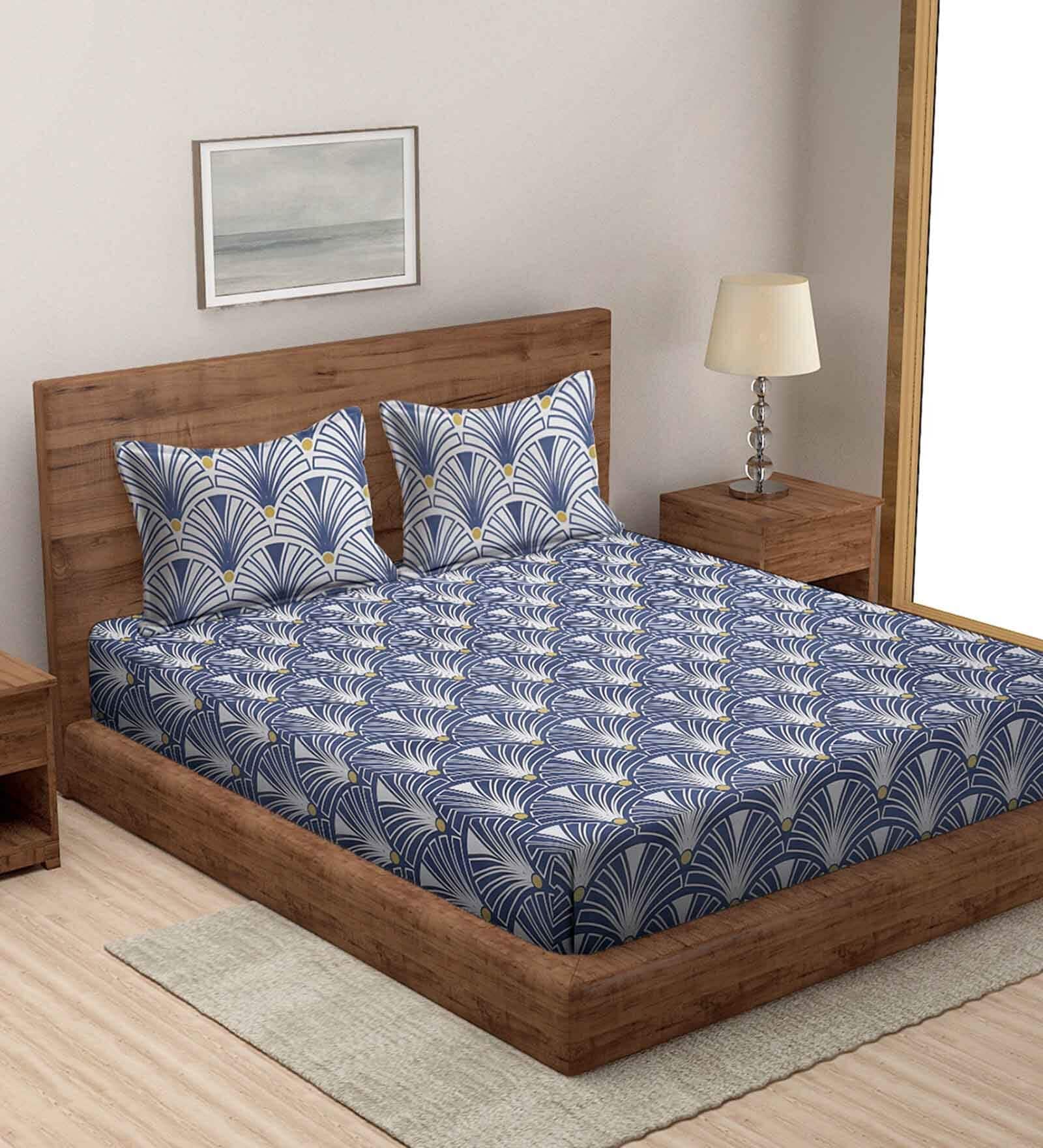 Blue Peacock King Size Double Bed Elastic Fitted Premium Bedsheet