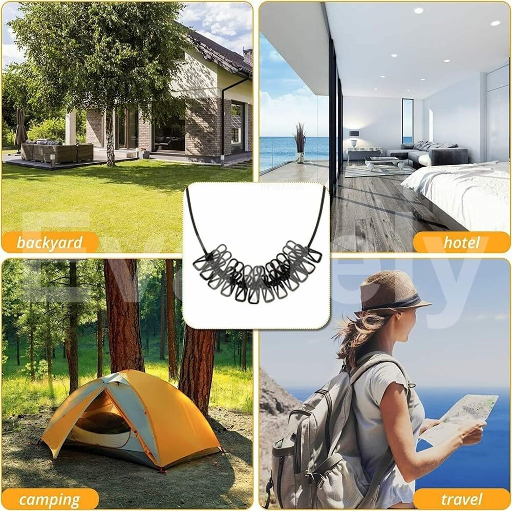 ⭐⭐⭐⭐⭐ "Great for Travel!" - "This clothesline is a lifesaver when I’m on the road. The non-slip clips hold my clothes securely, and it’s super easy to set up anywhere!"