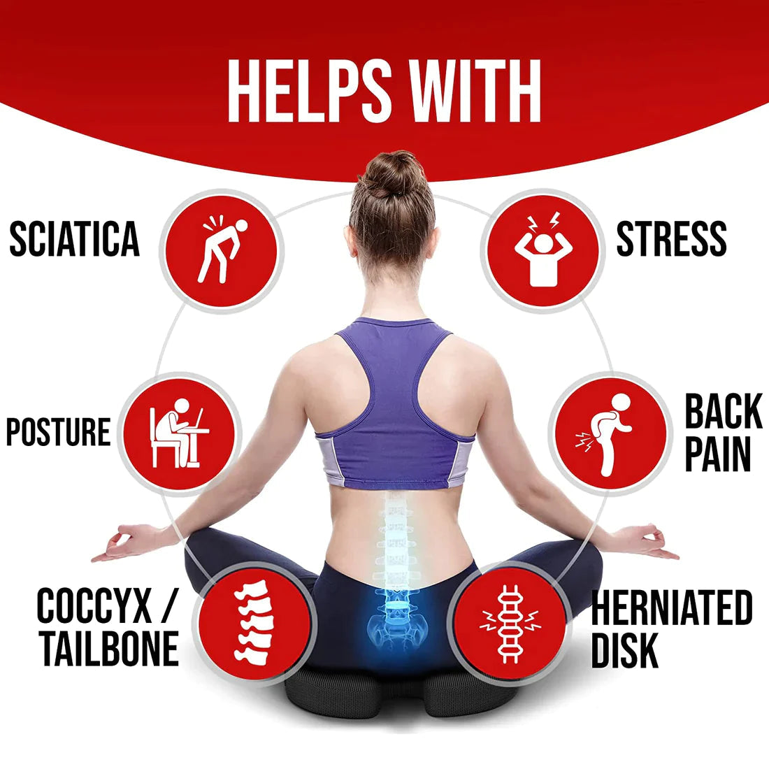 "This product has been a lifesaver! Highly recommended if you sit in one place for extended periods of time. Taking your torso's load off the tailbone makes all the difference to back pain! Been using it for about a month now and there is significant pain relief." - Jitendra