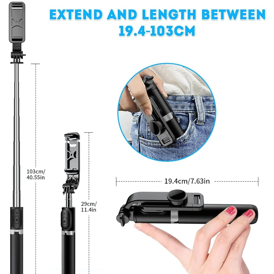 - Extendable Length: The extendable design allows you to adjust the selfie stick to your desired length, ensuring you capture the perfect angle and fit everyone into the frame.