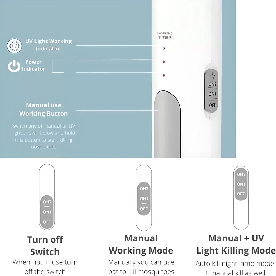 INNOVATIVE DESIGN: 3 layer rackets design to avoid the mosquito from escape. More than a bug zapper, it can be a mosquito killer lamp to lure the bugs themselves to come closer.