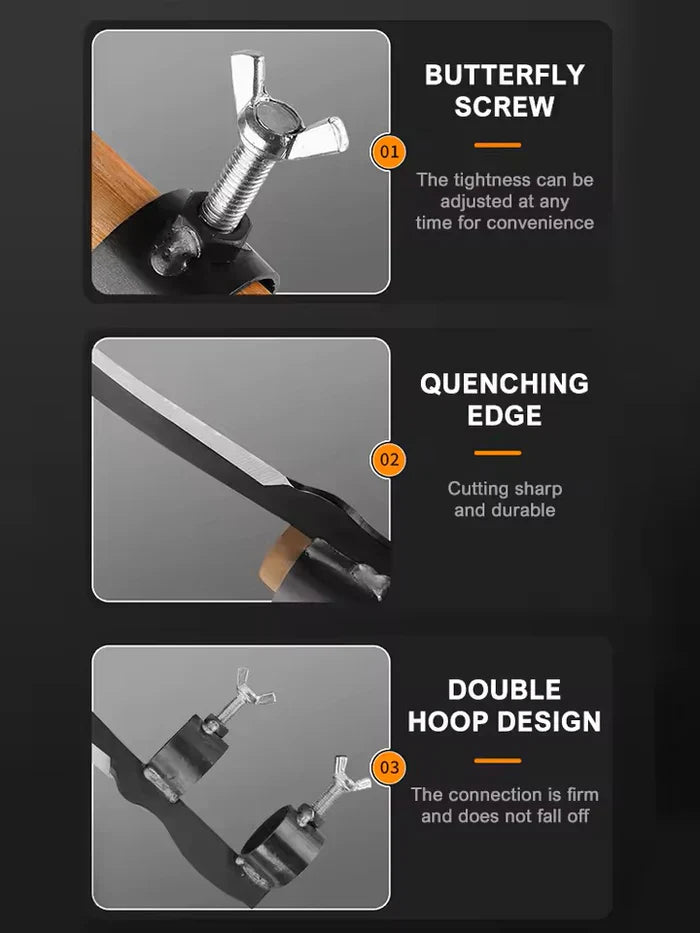 The blade is made from strong steel that stays sharp for a long time, allowing you to easily cut through grass, weeds, and small branches. Its curved shape helps make every cut smooth and efficient, so you don’t have to put in too much effort while working.🌿Versatile Use🌿