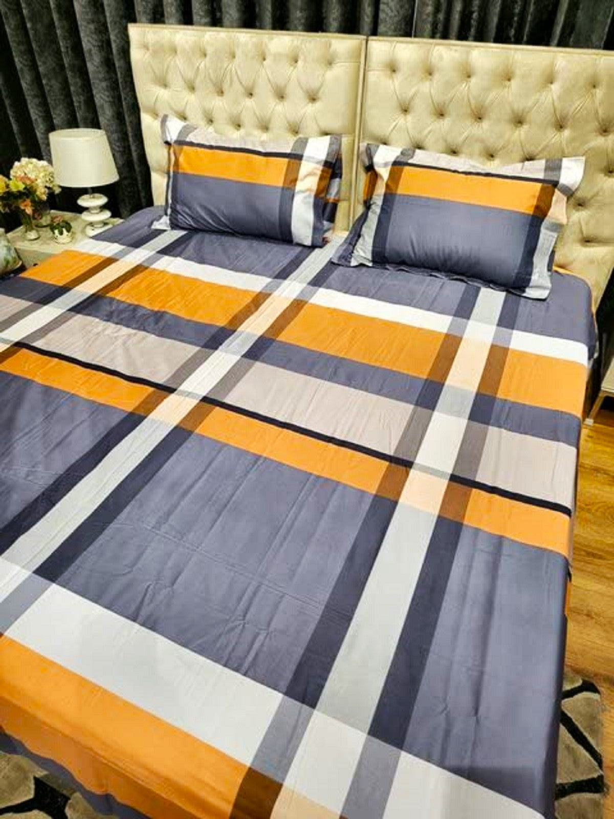Upgrade your bedroom with our Starry Stripes Double Bed Bedsheet. The simple design adds a touch of elegance to any room. Made with high-quality fabric, this bedsheet provides comfort and durability for a better night's sleep. Elevate your sleeping experience with Starry Stripes.