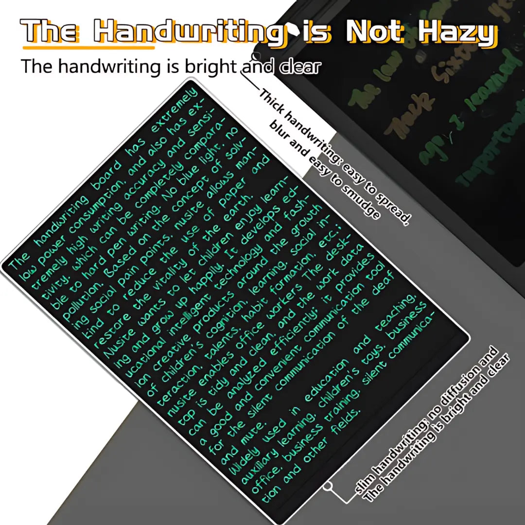 Easy and Enjoyable :Writing and Drawing on the tablet is just like on the paper. A writing tablet is like an endless sheet of paper! It can be scribbled over and over again, and can be erased with a single button, without charge or connection.